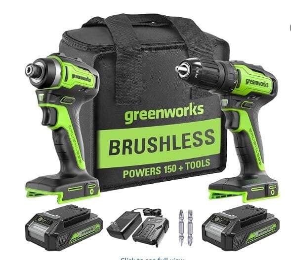 Greenworks 24V Brushless Cordless Drill and Impact Driver,Power Tool Combo Kit Included 1/2”Drill & 1/4”Hex Impact Driver and (2) Batteries, Fast Charger, 2 pcs Drill Bit Set & Bag