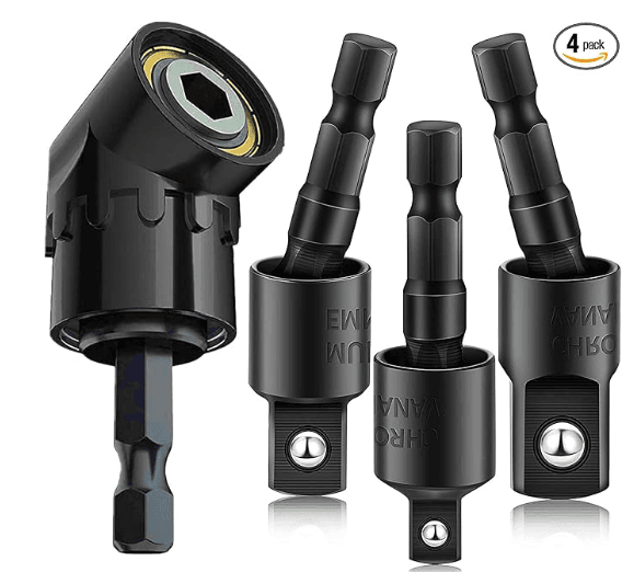 Right Angle Drill Adaptor,4-in-1 Impact Drill Bit Extension,360° Rotatable 1/4 3/8 1/2" Impact Grade Socket Adapter Set,105 Degree Angle Screwdriver Drill Bit