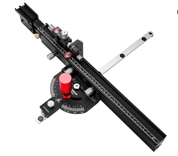 Table Saw Miter Gauge with Micro Adjustable Flip Stop and Extendable Fence and Quick Angle Stop for Table Saw Band Saw Router Table Fit 3/8 x 3/4" T Slot for Woodworking Crosscut, Miter Cut