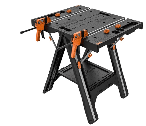 Worx Pegasus 2-in-1 Folding Work Table & Sawhorse, Easy Setup Portable Workbench, 31" W x 25" D x 32" H Lightweight Worktable with Heavy-Duty Load Capacity, WX051 - Includes 2 Clamps & 4 Clamp Dogs